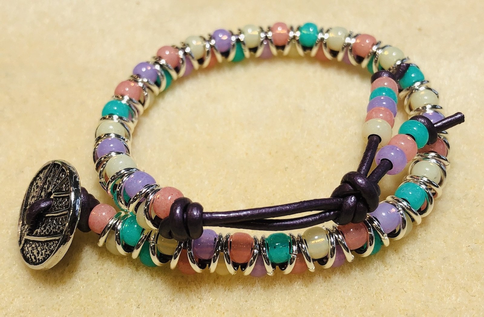 Leather Memory Wire Picasso Bugle Bracelet Kit